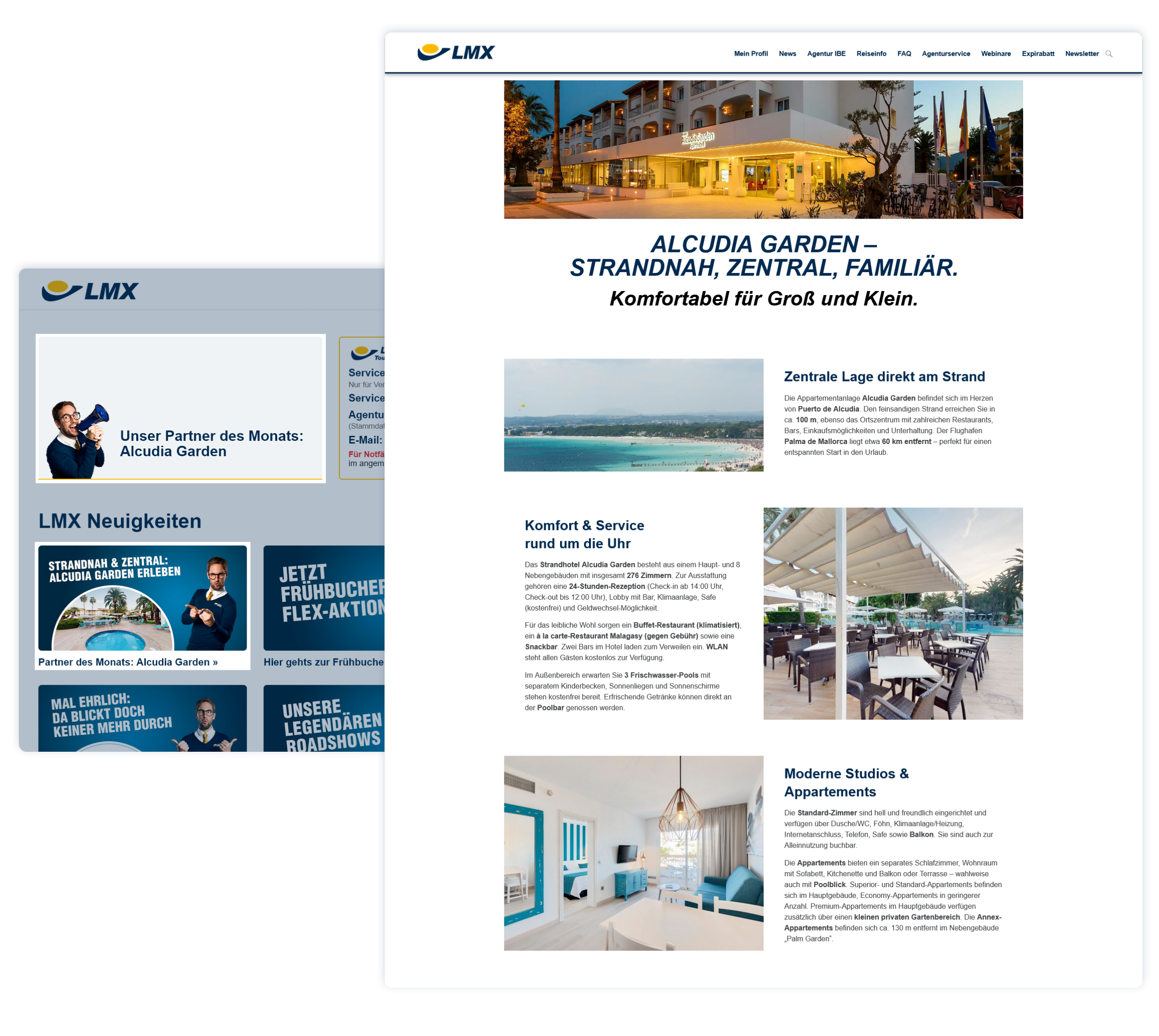 Once per week we send our popular B2B newsletter with offers and image promotion to our 9500 travel agencies in D-A-CH and in the Netherlands. (up to 5 hotels per newsletter)